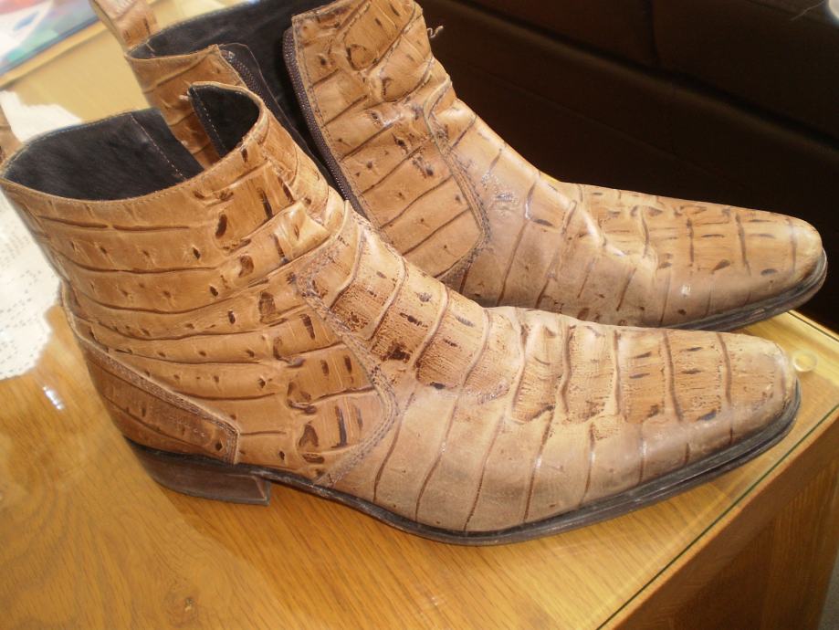 Nošene ali uvijek vrhunske Belmondo muške čizme od krokodilske-kaiman kože, veličina 43. Vjerojatno trebaju manju intervenciju postolara, ali ništa bitno.