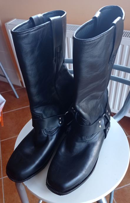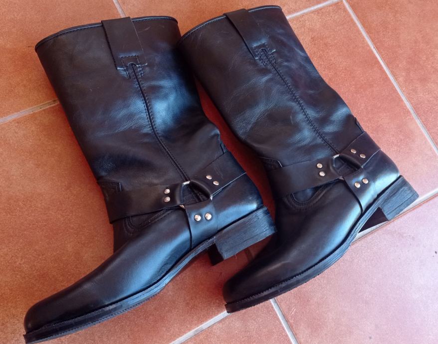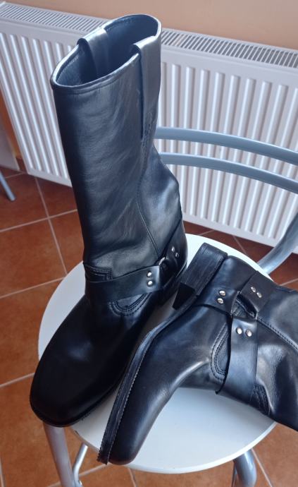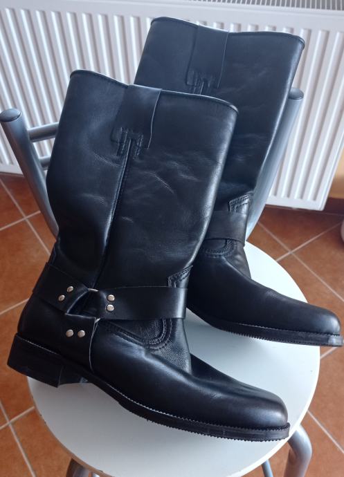 Visoke crne kožne muške čizme, ručni rad, vrhunska meka koža 100%, podstavljene, nove, nenošene, broj 42/43.