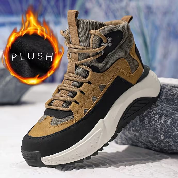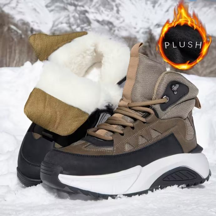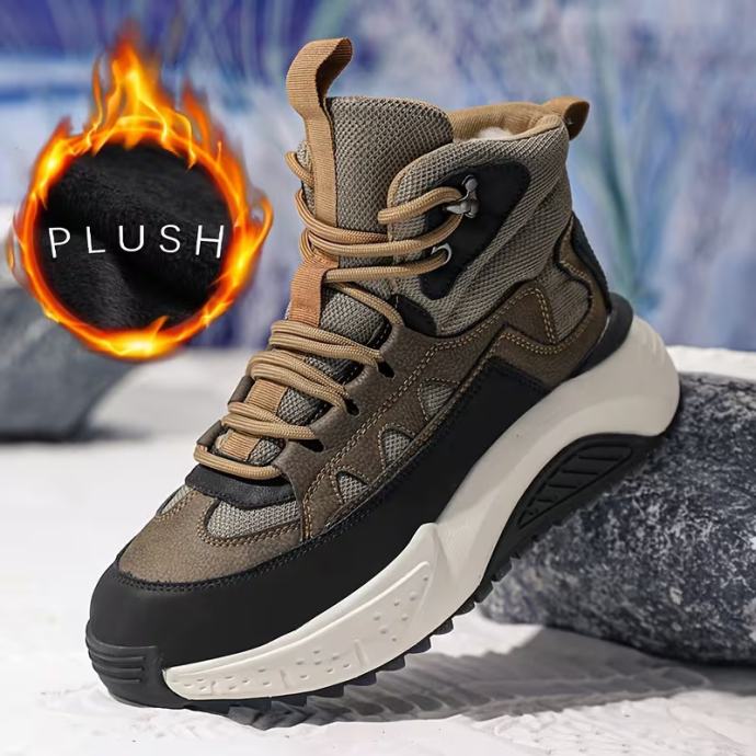 Muške termoizolirane zimske čizme s podstavom - gornjište od PU/tkanine, zatvaranje patentnim zatvaračem i čipkom, uložak s jastučićima i potpora za svod stopala, smeđa/crna/bijela/bež - niski okrugli vrh za snijeg, led i ležernu odjeću - idealne za skijanje, planinarenje i ležerne odjevne kombinacije - elegantne zimske čizme za muškarce, skijaške cipele, obuća za hladno vrijeme, retro dizajn, izdržljiva konstrukcija, topla podstava, ljubitelji aktivnosti na otvorenom
