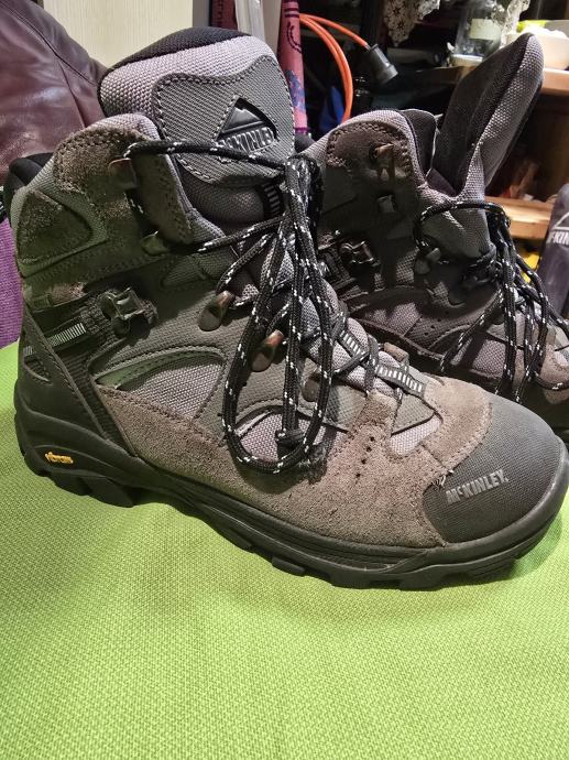 Prodajem McKinley planinarske čizme, veličina 40. Čizme su srednjeg kroja s potporom za gležanj, kombinacija smeđih i zelenih tonova. Opremljene su Vibram potplatom za dobar grip na različitim terenima. Vezanje je na klasične pertle, a gornji dio izrađen je od kombinacije kože i tekstilnih materijala. Pogodne za planinarenje i dulje šetnje prirodom.