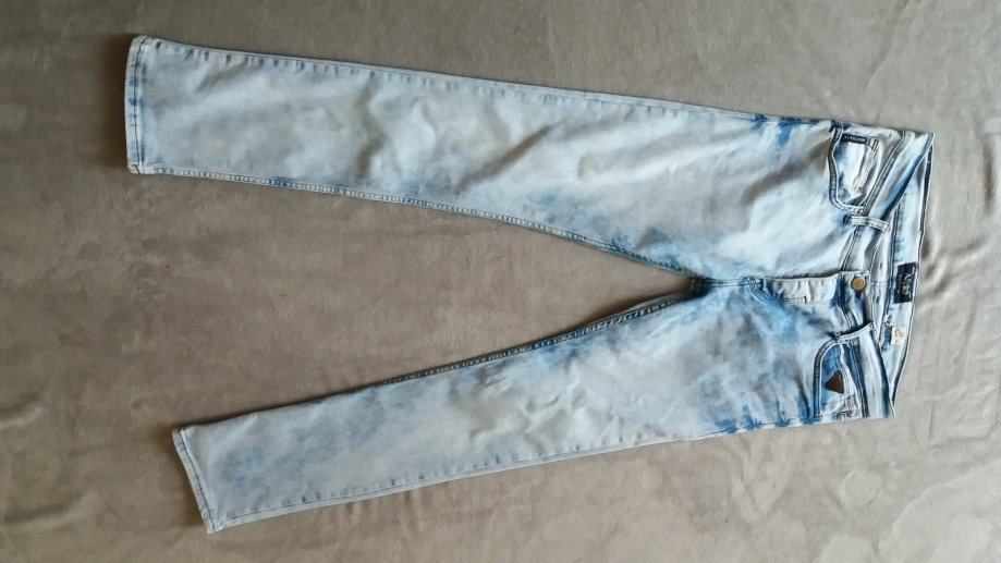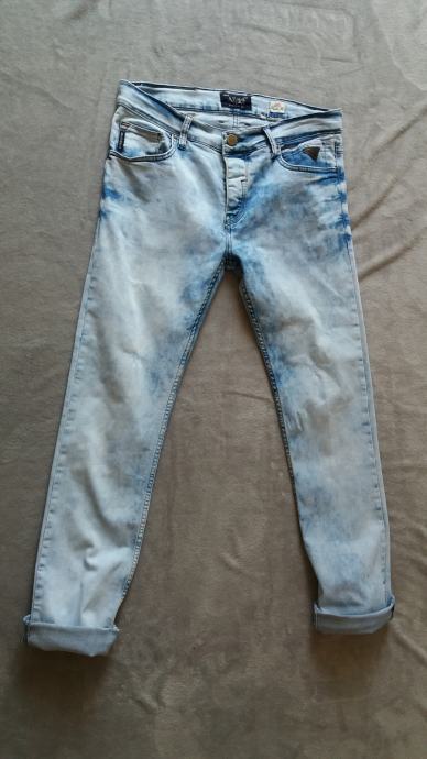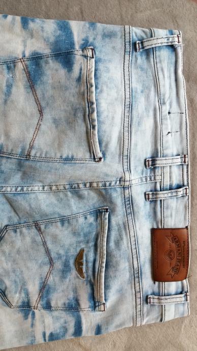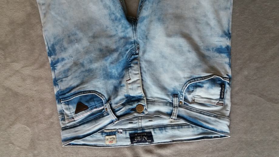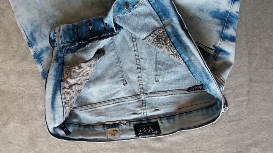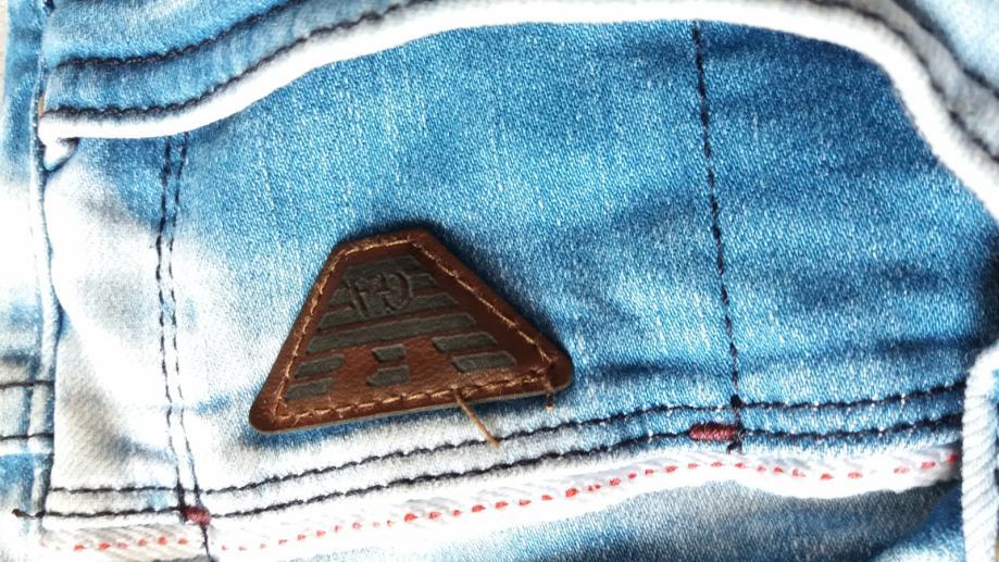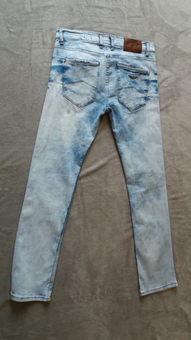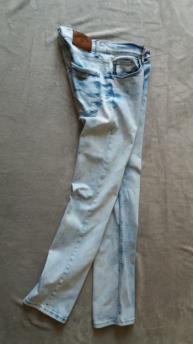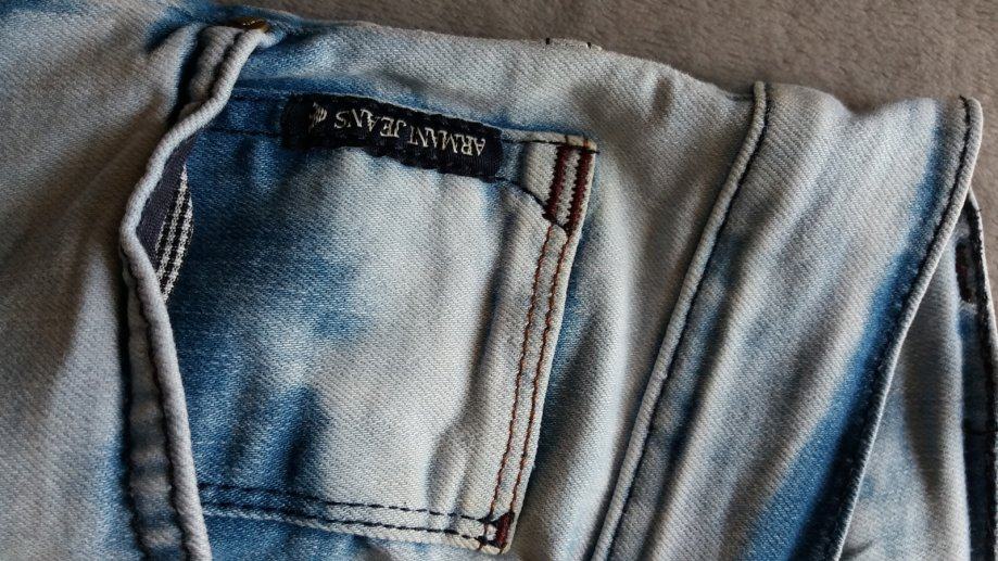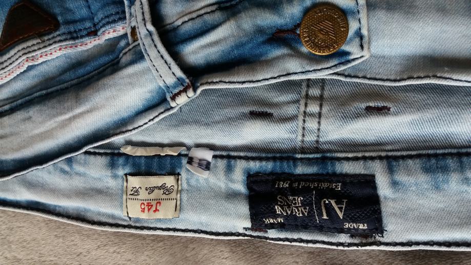 Prodajem par puta nosene traperice ARMANI JEANS W33, sirina struka zakopcanih hlaca 43 cm (opseg 86 cm) duzina hlaca 101 cm,sirina nogavice kod gleznja 18 cm, imaju elastina , kao nove ,fini meki traper,