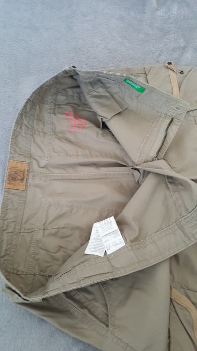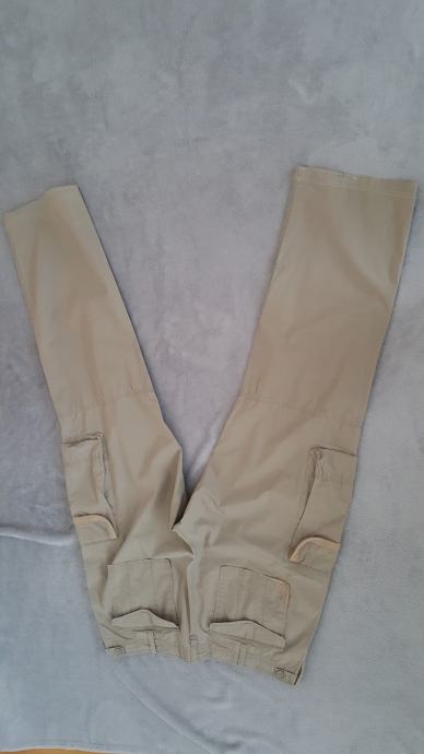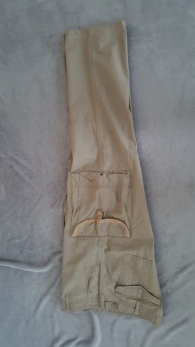 Prodajem par puta nosene hlace Benetton br 52, tanki pamuk, sirina struka zakopcanih hlaca 50 cm( obujam 100 cm) duzina hlaca 106 cm, sirina nogavica kod gleznja 24 cm