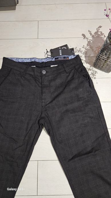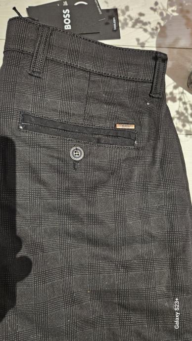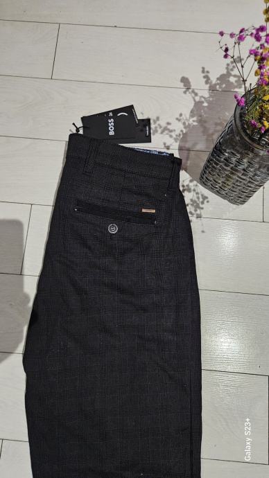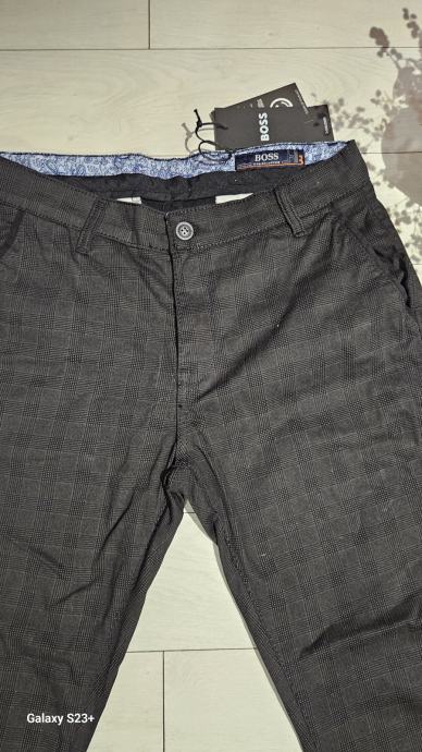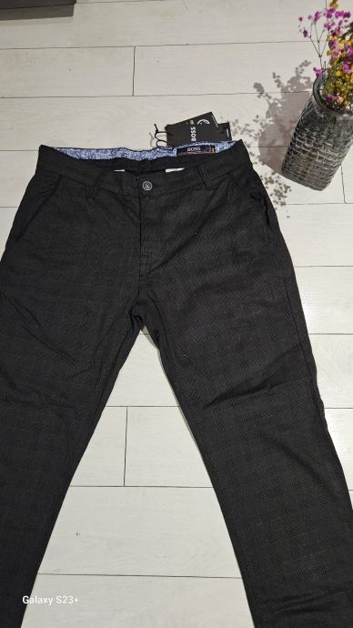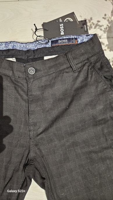Boss traperice nove pamuk sa elastinom karirano tamno smeđe boje veličina 31 struk širina 46 duljina nogavice 103 mogučnost slanja poštom