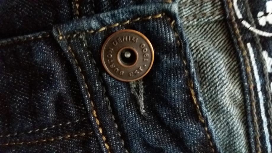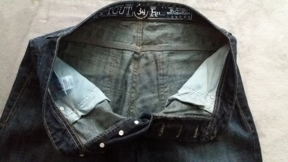 Prodajem jednom nosene traperice BURTON London vel W 34, sirina struka zakopcanih hlaca 46 cm (obim.92 cm), vrlo kvalitetan traper , duzina hlaca 107 cm, sirina hlaca kod gleznja 25 cm, kao nove