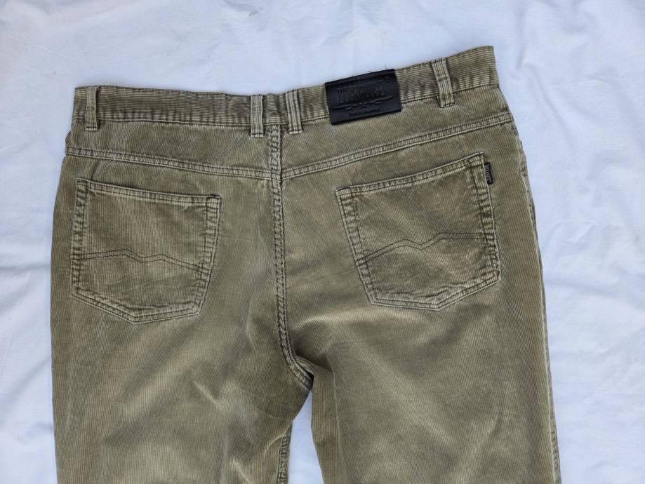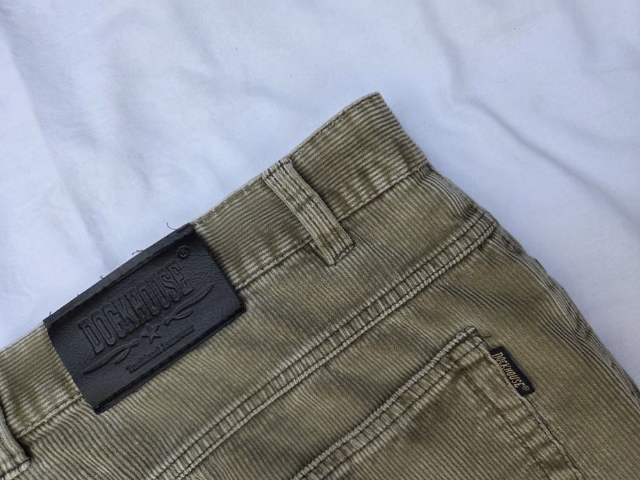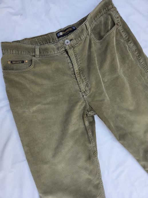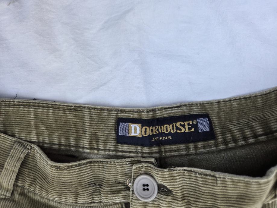 Dockhouse muške samtene hlače original veličina Weist W 42 - talijanski 56 - sa mjerama- opseg u struku vodoravna mjera 54 cm, mjereno u kruh krojačkim metrom 112 cm, visina hlača 110 cm, donji otvor nogavica R - 24 cm, 100% pamuk zelenkasto smeđi mix boja, šlic na metalni cif.....uredne, nisu izlizane na osjetljivim mjestima....pogledajte i ostale moje oglase