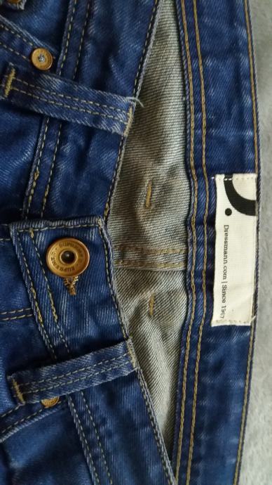 Prodajem nikad nosene traperice Dressmann W32 L30, sirina struka zakopcanih hlaca 43 cm (opseg 86 cm) duzina hlaca 98 cm, sirina nogavice u najdonjem dijelu 18.5 cm, fini tanji traper ,vrlo kvalitetne