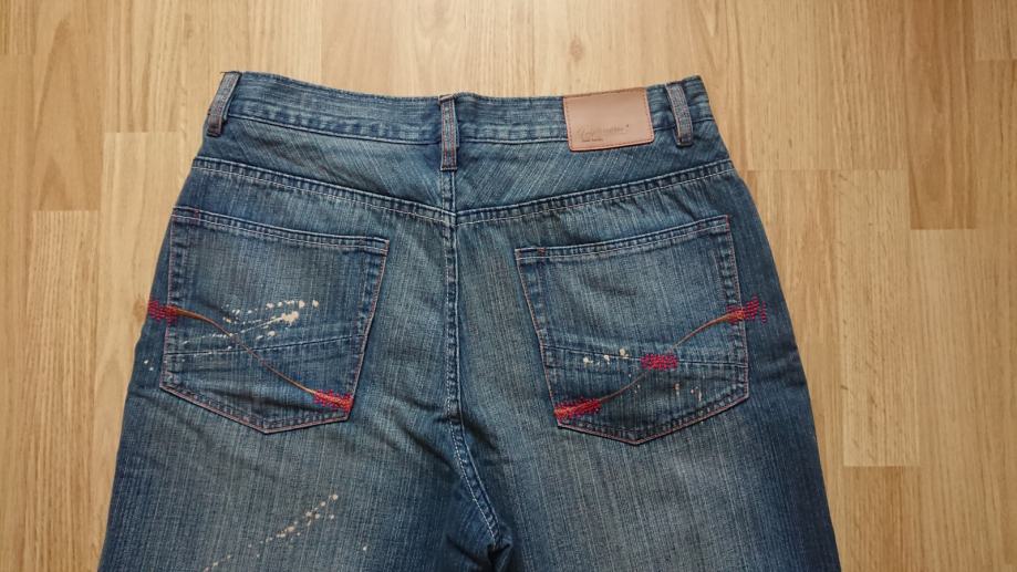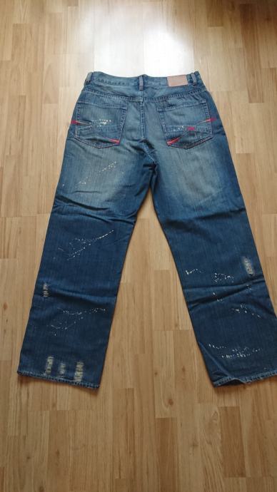 Prodajem navedene traperice, nošene su svega nekoliko puta prije dugo vremena i od tad stoje u ormaru. Dužina ne piše na etiketi ali pošto se široke traperice nose na poseban način, tko zna,zna ali mislim da bi odgovarale osobi od 190cm pa naviše. Cijena fiksna!
