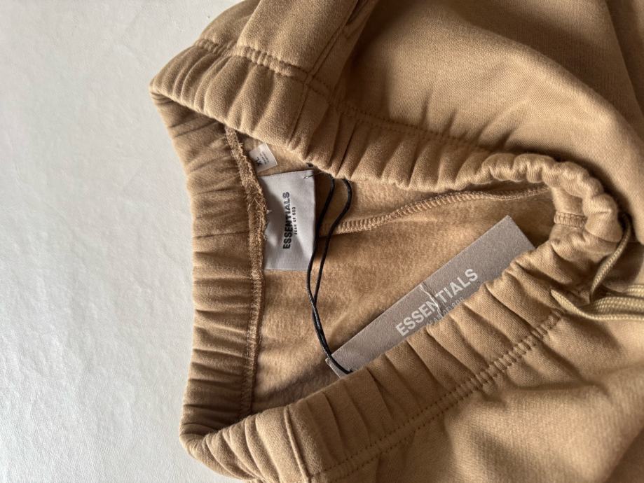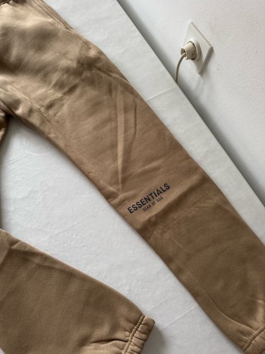 Potpuno nove Essentials hlače smeđe boje s originalnom etiketom, veličine M/L. Udobne hlače s elastičnim pojasom i manžetama, idealne za svakodnevno nošenje.