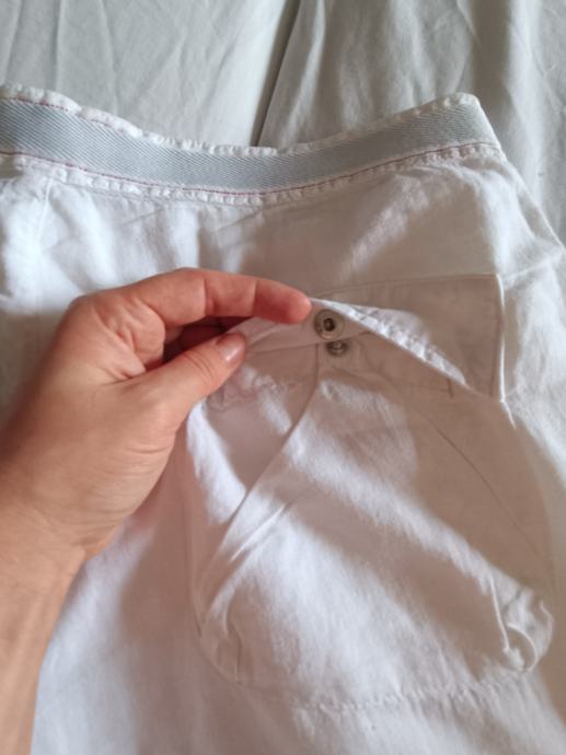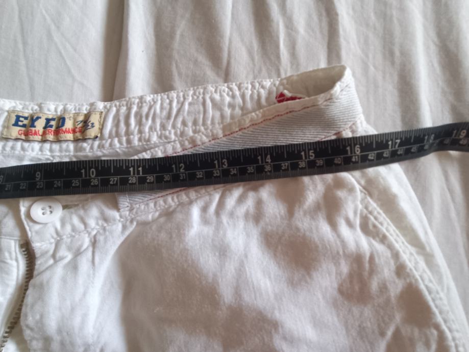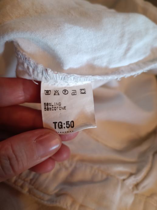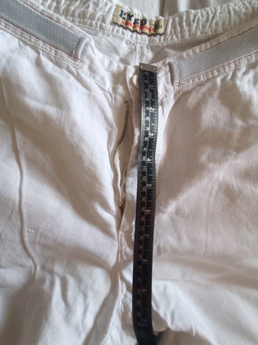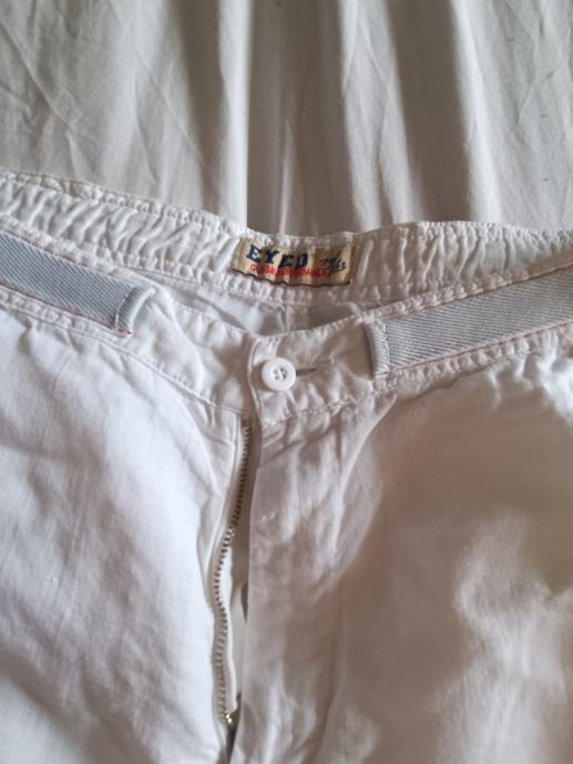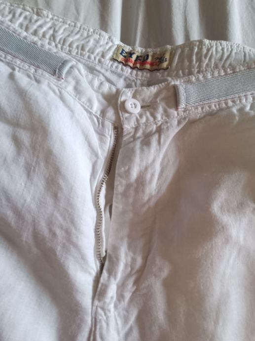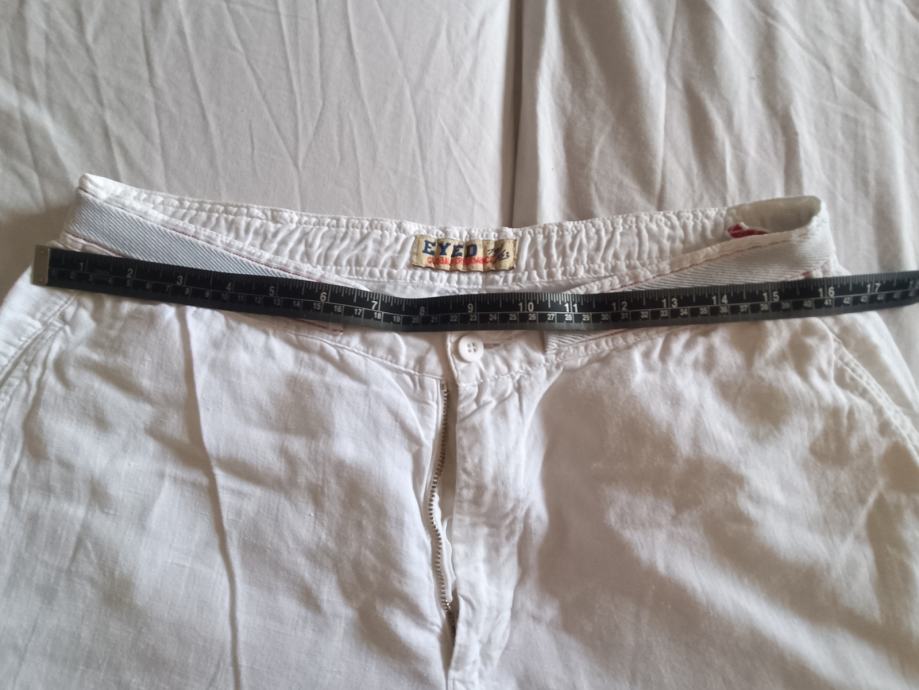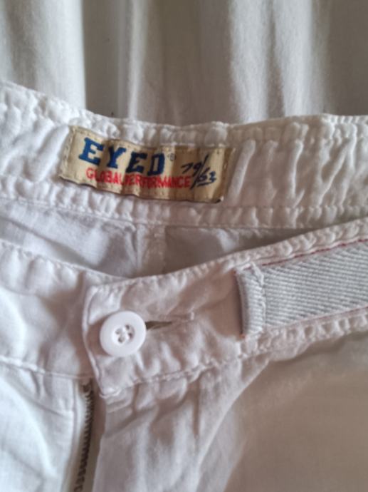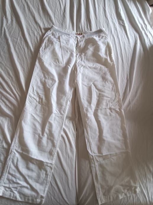 Eyed muške hlače veličina 50, bijele, materijal pamuk i lan. Lagane i prozračne, široke nogavice.