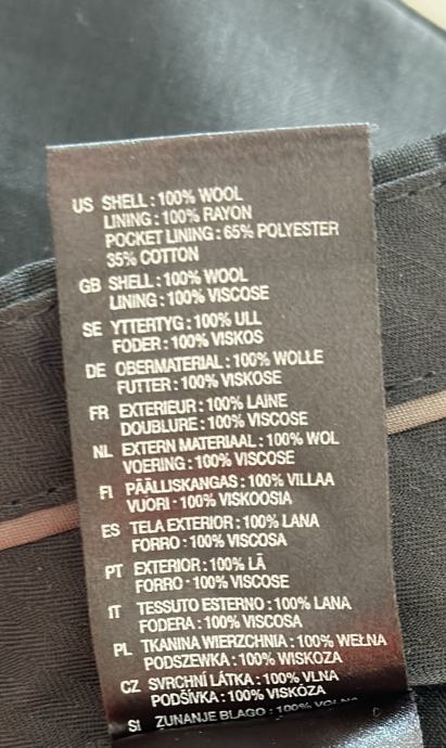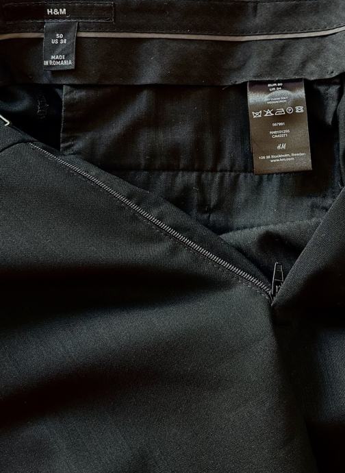 H&M muške hlače za odijelo vel.50, L novo, bez etikete. Kupio ih je suprug prije godinu dvije, ali više ih ne može zakopčati pa bezveze stoje u ormaru, nikad obučene, nove su, samo je skinuta etiketa, 100% vuna, fine, tanke i kvalitetne, ne gužvaju se, jako ugodan materijal na opip.