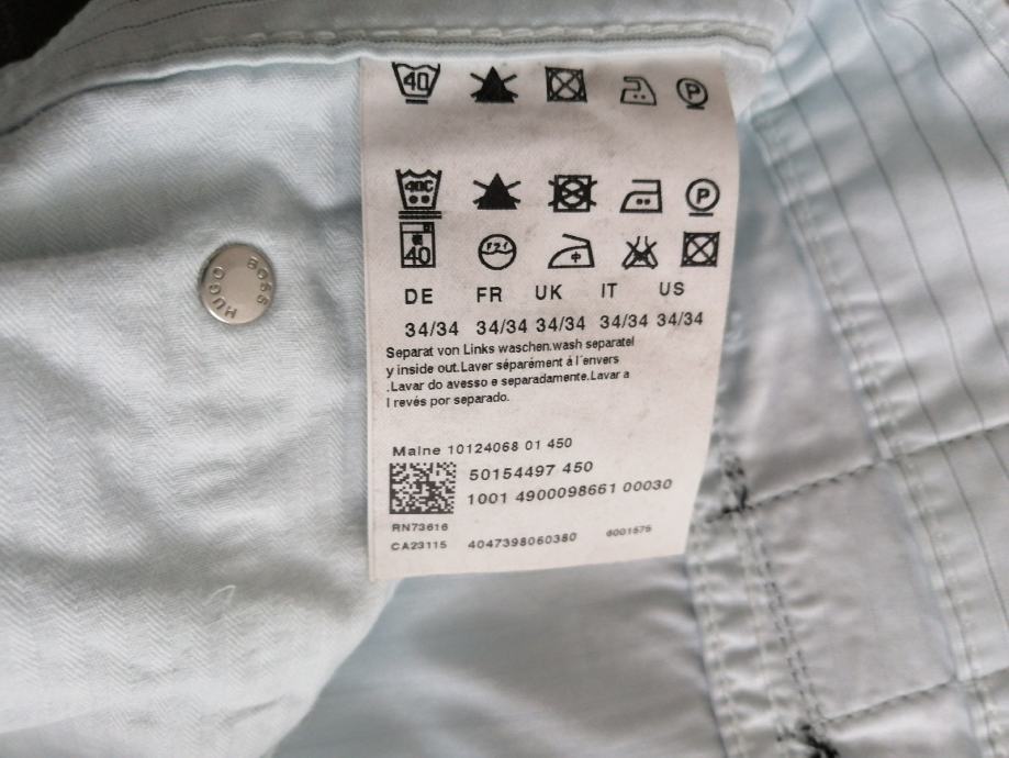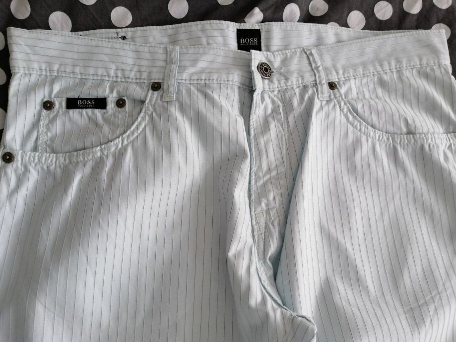 Original Hugo Boss lagane svijetlo plave hlače na tanke prugice. Nove.
