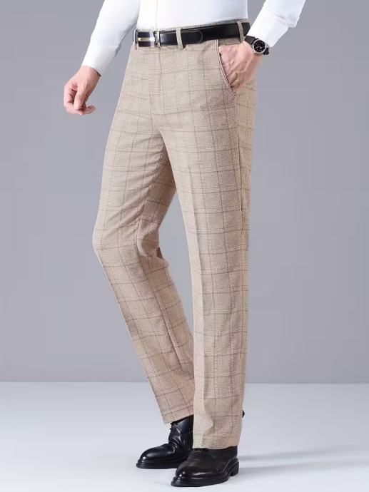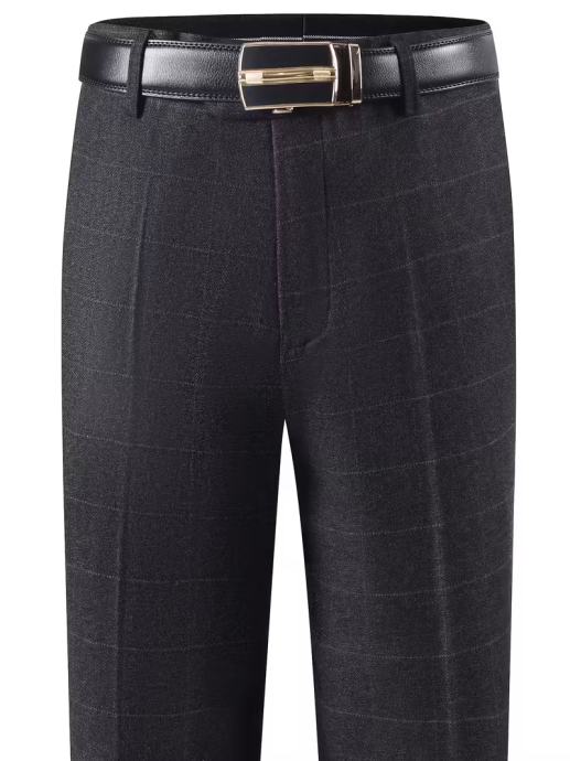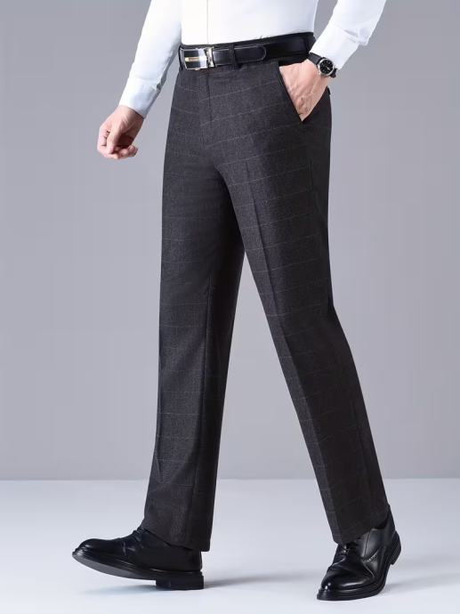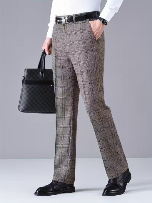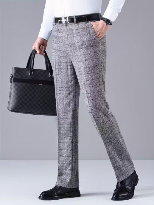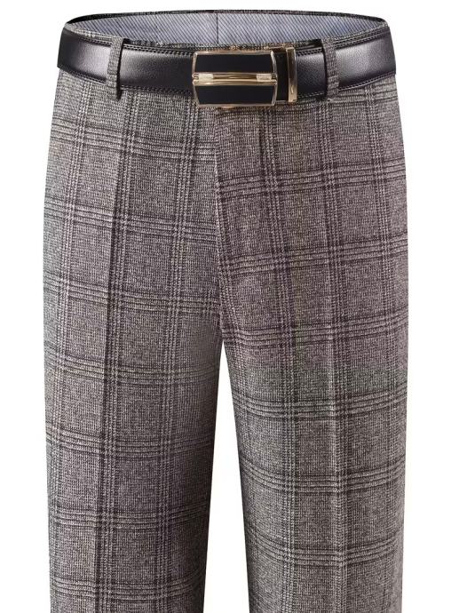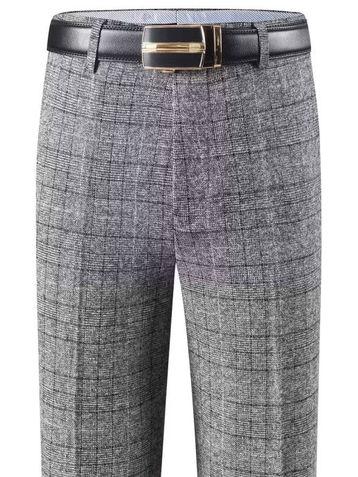 Muške debele karirane poslovne hlače za jesen/zimu, tvid hlače otporne na gužvanje bez peglanja, super viseće ležerne odijelne hlače, muške ravne formalne hlače za srednje životne dobi