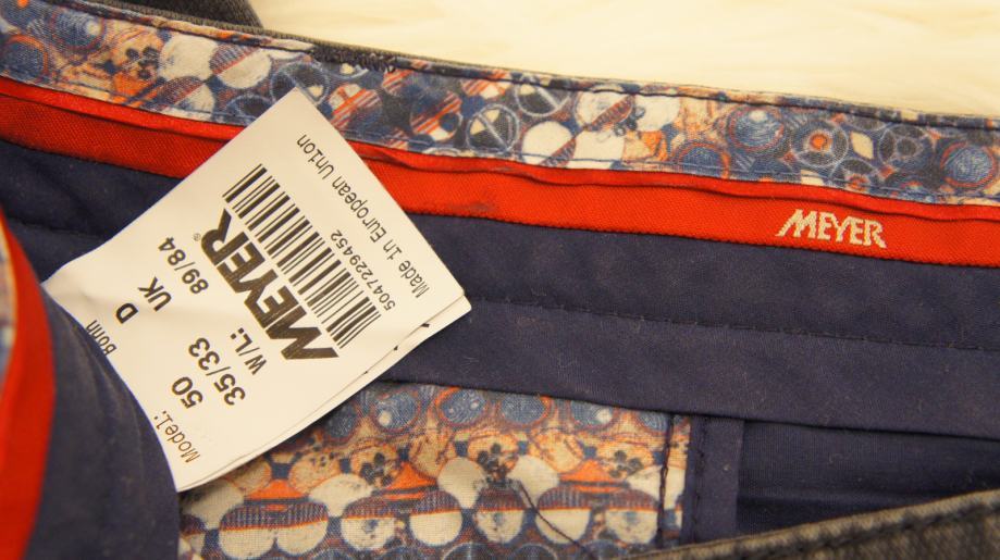 MEYER ZIMSKO/JESENSKE HLACE, PLACENE 900KN, NOSENE PAR PUTA, OD VISOKE NJEMACKE KVALITETE MEYER. BOJA ANTRACIT SIVA SA SITNIM UZORKOM ILI IZBLJEDZENO CRNA. VELICINE EU50 ZA VISINU OD 175+CM I 80+KG CCA. 100% PAMUK. REGULAR FIT TJ. NORMALAN KROJ.