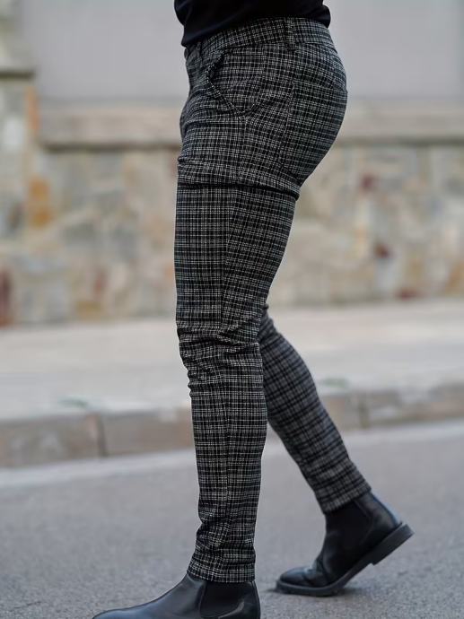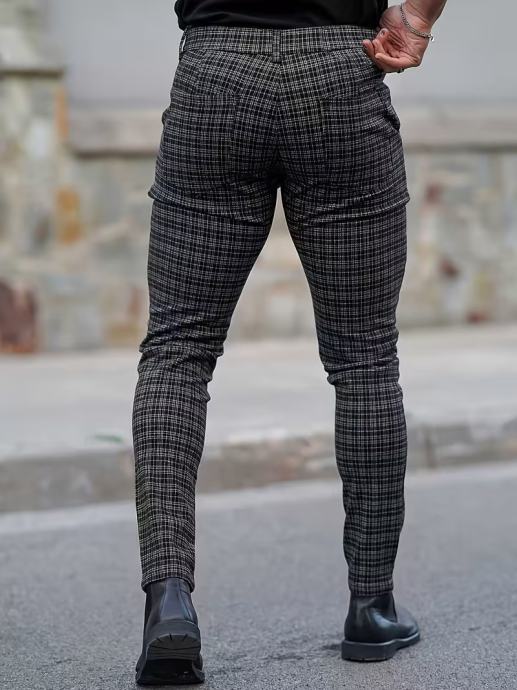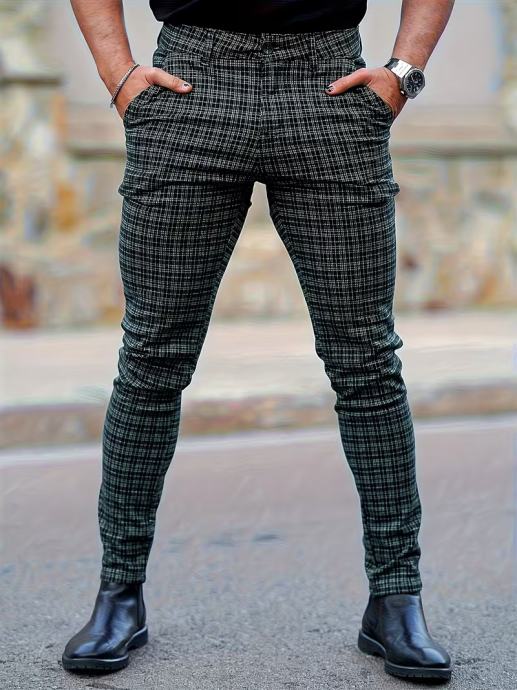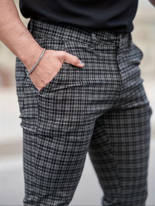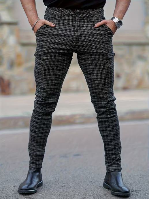 Muške elegantne cvjetne karirane hlače slim kroja s džepovima - izrađene od prozračne mješavine bambusa i rajona, udobne rastezljive tkanine, prikladne za ležerne aktivnosti i aktivnosti na otvorenom, savršene za sva godišnja doba.