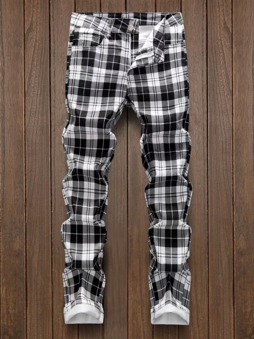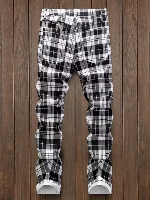 Muške klasične karirane traper hlače u stilu haljine - elegantan vintage dizajn, svestrane ležerne poslovne hlače od mješavine tkanine i elastičnog pojasa, perive u perilici rublja, prikladne za sva godišnja doba