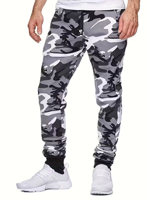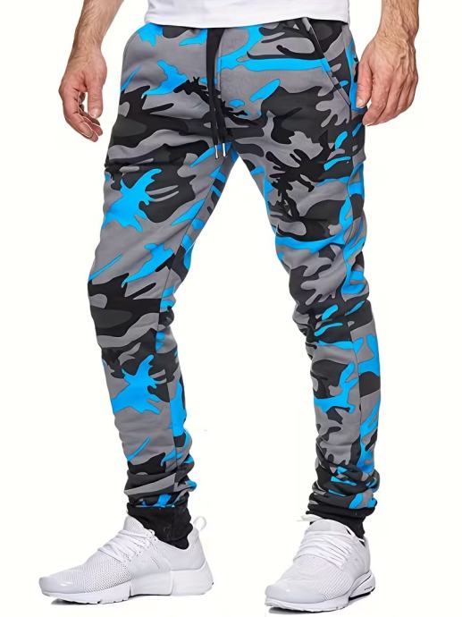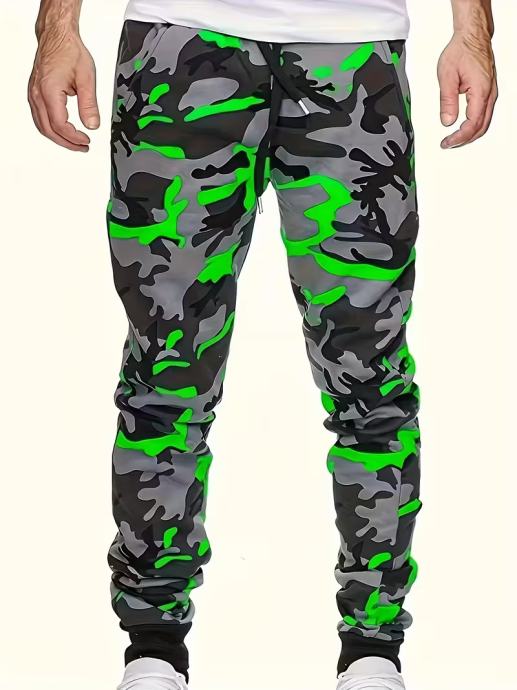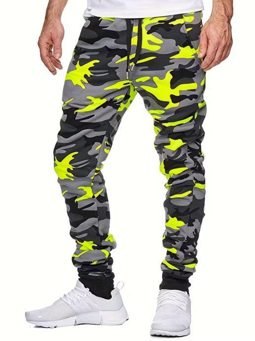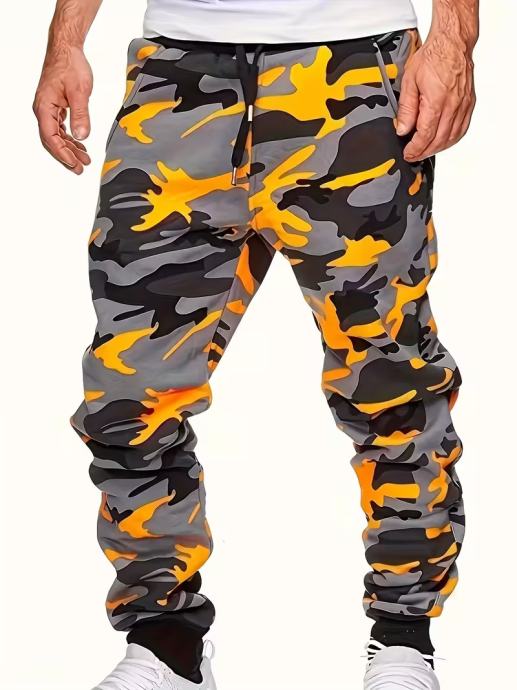 Muške ležerne camo jogger hlače - elegantni narančasto-sivi print