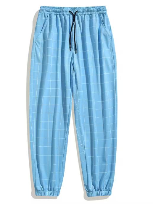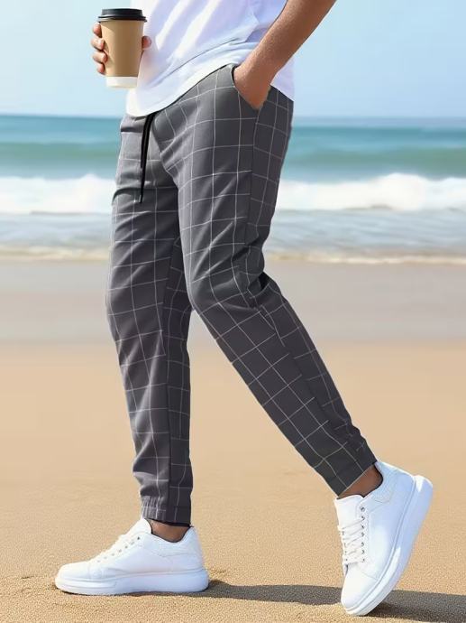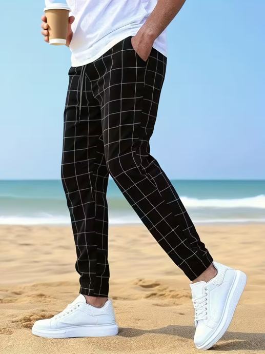 Muške ulične modne karirane ležerne duge hlače iz 2025., elegantne muške hlače za slobodno vrijeme s vezicama, dostupne u više boja, s geometrijskim digitalnim printom.