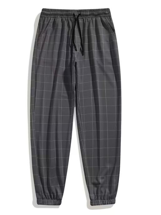 Muške ulične modne karirane ležerne duge hlače iz 2025., elegantne