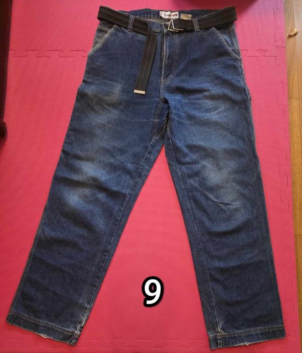 9. Tamno plave traperice Timberland, sa crnim remenom, velicina 36 (realno XL-XXL). Dužina 114 cm, Struk 46cm. Široke nogavice.