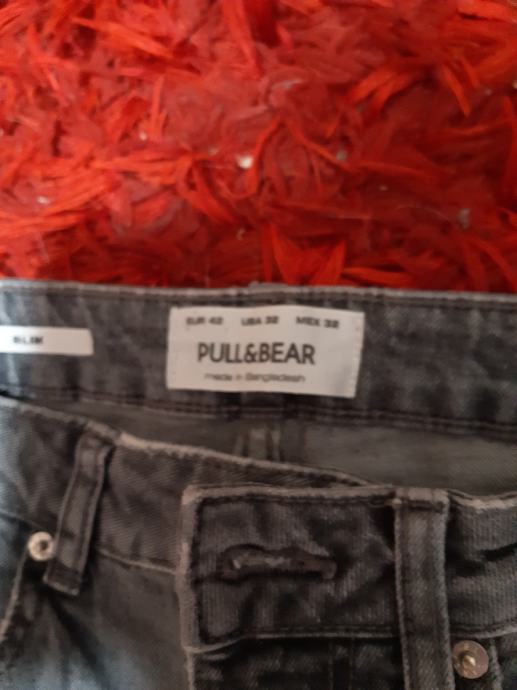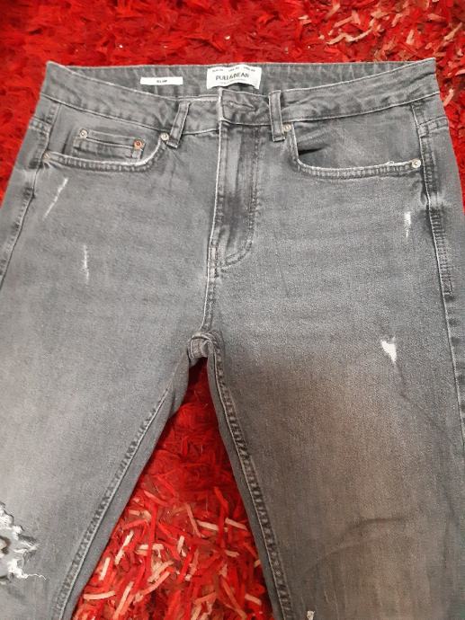 PULL & BEAR sive muske traperice, uzi mpdel, vel.32/32. Širina struka, prednja strana: 46 cm, bokova: 52 cm, duzina: 104 cm, dubina prednjice: 28 cm.