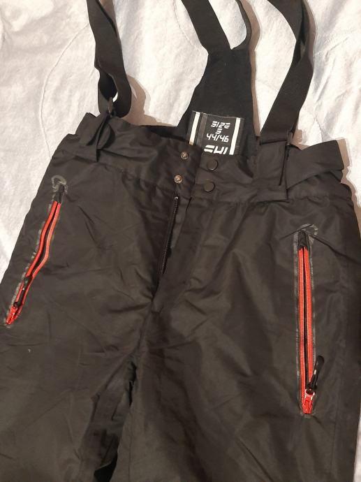 Crne ski hlače nošene svega par puta, bez ikakvih oštećenja, kao nove. Vel. 36-38. Dužina od vrha pasice do dolje 110cm, dužina međunožja 80cm, širina pasice 41cm.