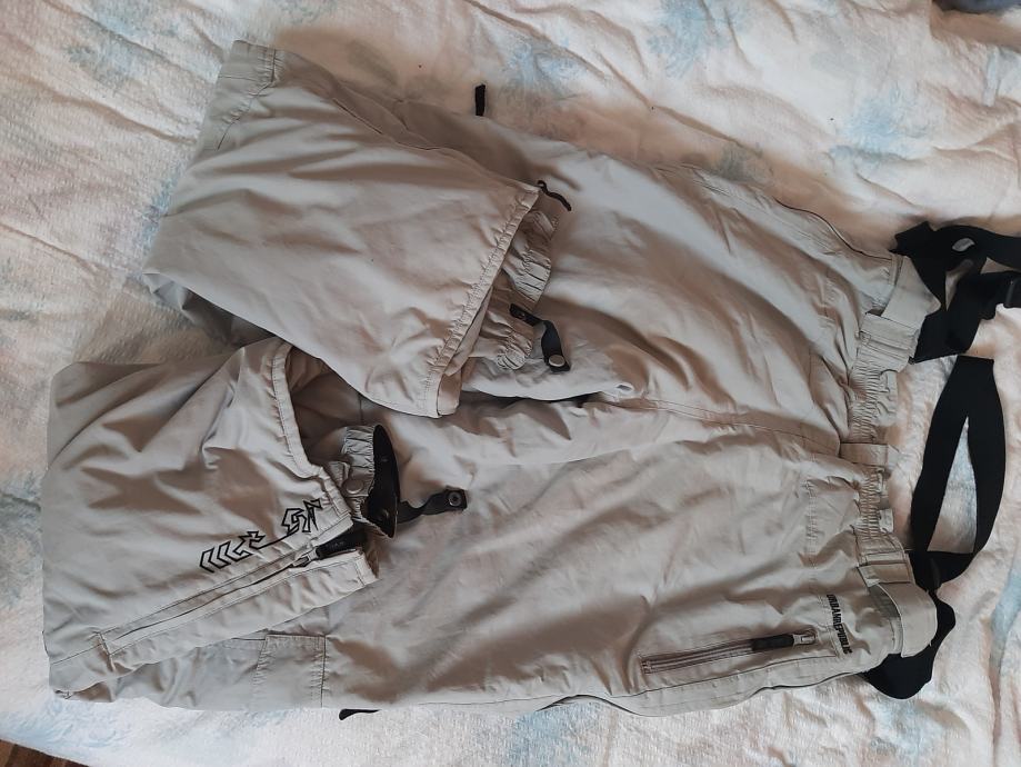 Ski hlače. Nošene jednu sezonu, očuvane. Univerzalne (muške i ženske). U struku se mogu regulirati. Vel. Muška L ili ženska XL. Dužina od vrha pasice do dolje 112 cm, međunožje 81 cm, struk 52cm