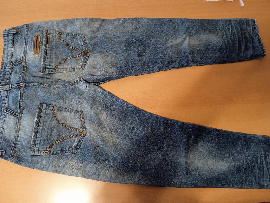 Nudim traperice kao na slikama, rado nošene i kao što se vidi, oštećene....širina u struku 50 cm, dužina 98 cm
