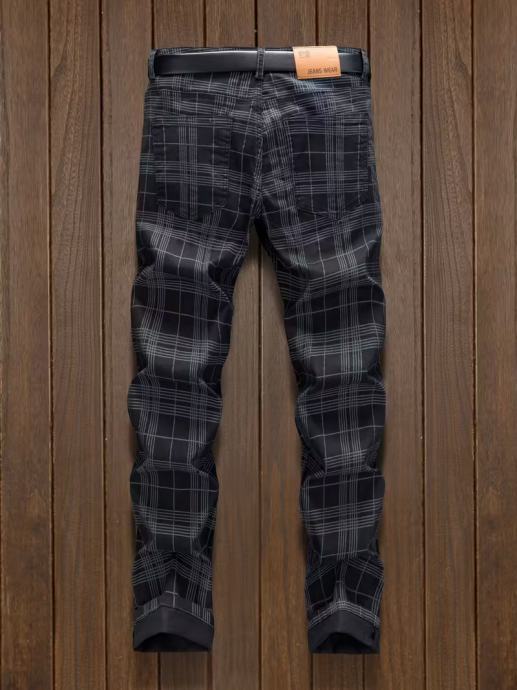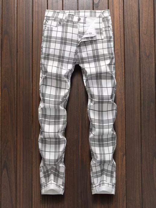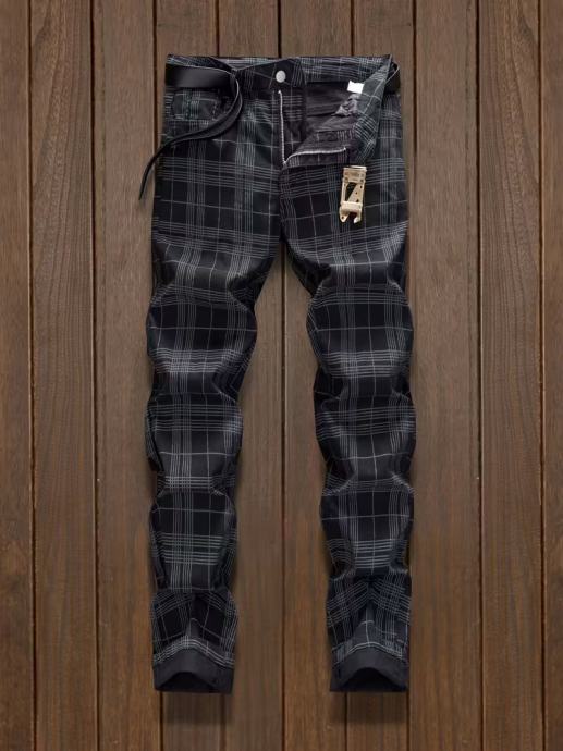 Vintage ležerne svestrane lagane poslovne karirane hlače uskog kroja, rastezljive muške hlače, remen nije uključen