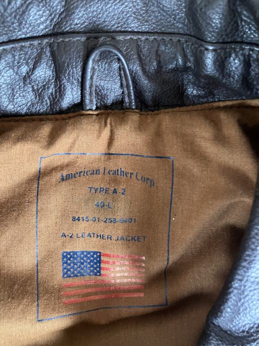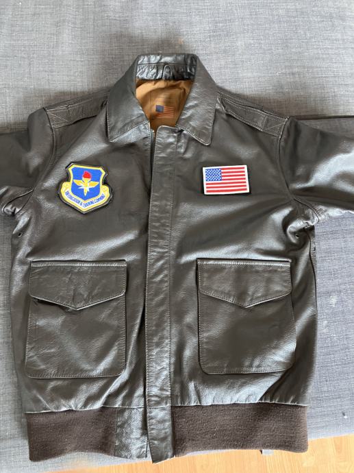 Vojna kožna pilotska jakna A2 iz Amerike u odličnom stanju sa čičak oznakama Američkih snaga. Kvaliteta je u rangu Avirex A2 vojne jakne. Veličina između M i L