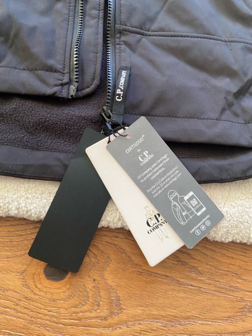 Nova C.P. Company vjetrovka veličine L s prepoznatljivim naočalama u kapuljači, potpuno netaknuta s etiketom. Savršena za zaštitu od vjetra i kiše, a karakterističan dizajn s kapuljačom i džepovima čini je nezaobilaznim modnim dodatkom za svako godišnje doba.