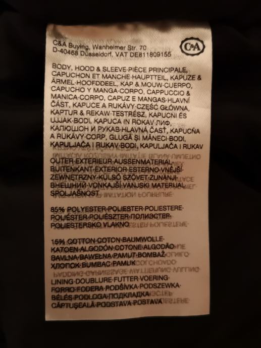 - sirovinski sastav: 85% poliester, 15% pamuk