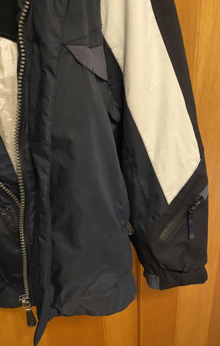 Jakna u izvrsnom stanju s odvojivom kapuljačom XXL veličina u nijansama crne, bijele i tamno plave boje.