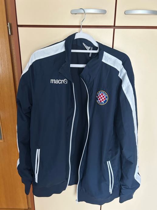 Prodajem Hajdukov šuškavac u plavoj boji, veličine 3XL. Jakna je proizvedena od strane Macron brenda i nosi službeni grb Hajduka. Udobna sportska jakna s bijelim detaljima na ramenima i prugama na džepovima. Potpuno funkcionalan patent zatvarač i dva bočna džepa.