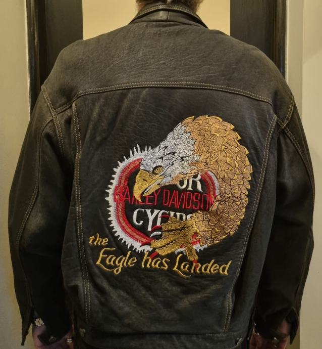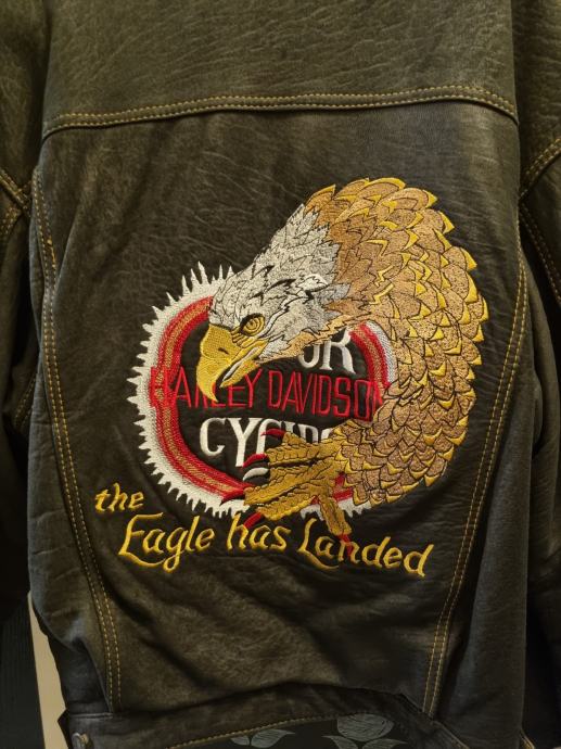 Na leđima bogato ušiven natpis "The Eagle Has Landed" s orlom i znakom Harley Davidsona – prava atrakcija!