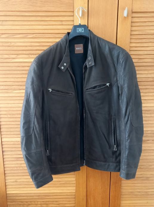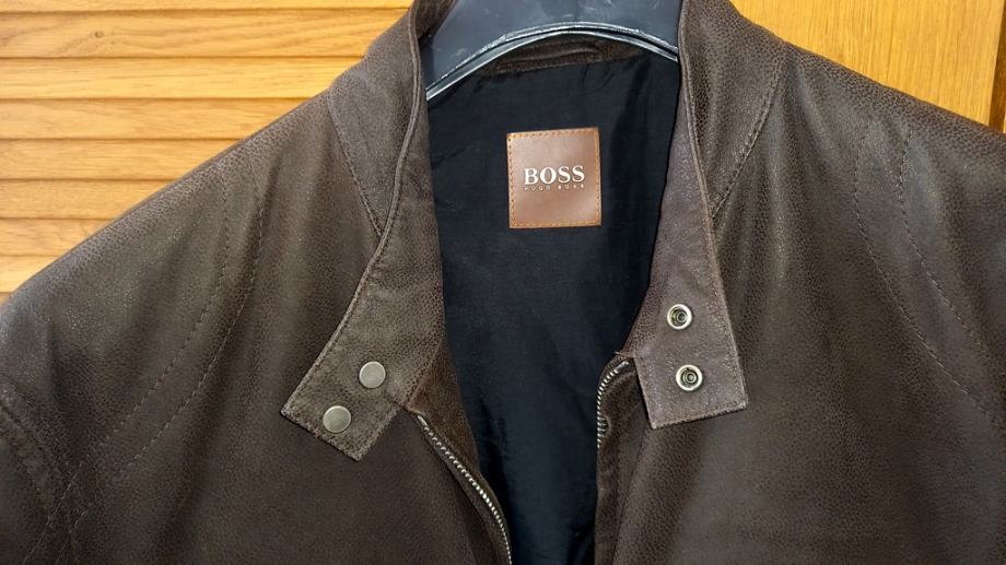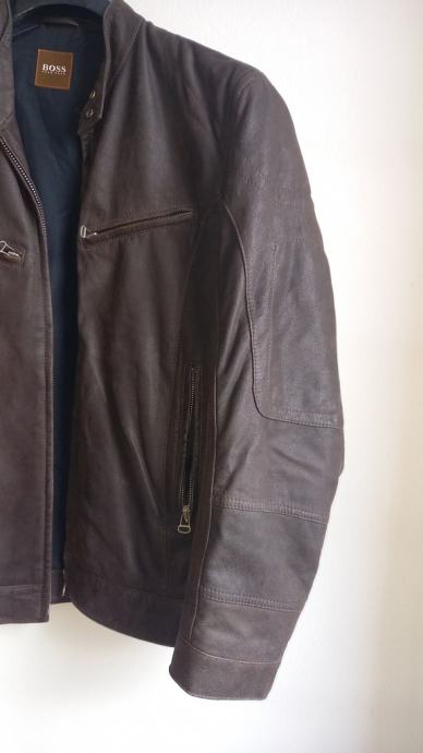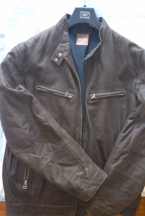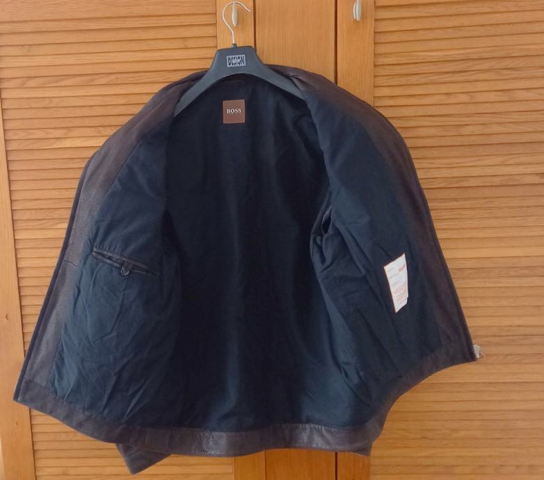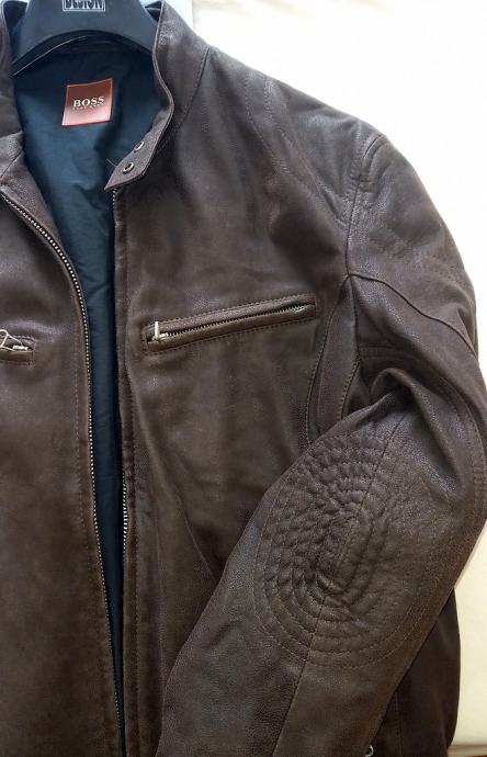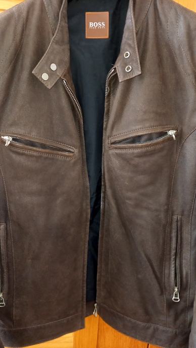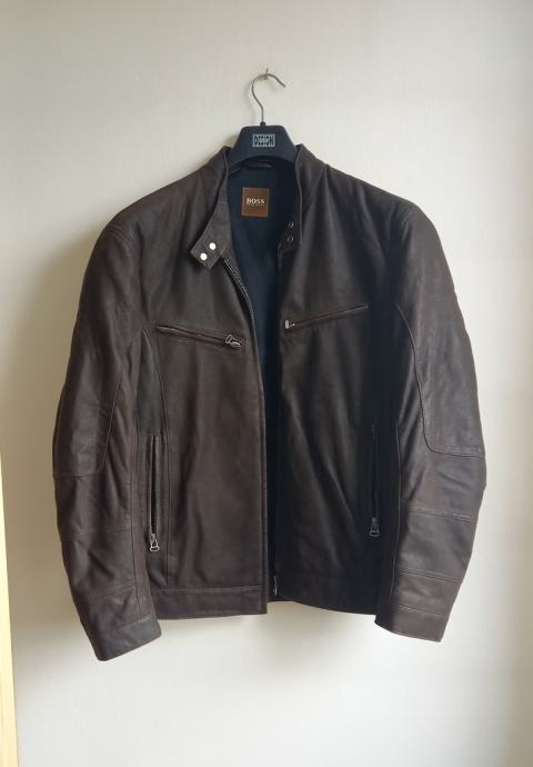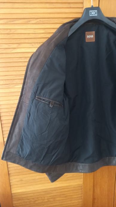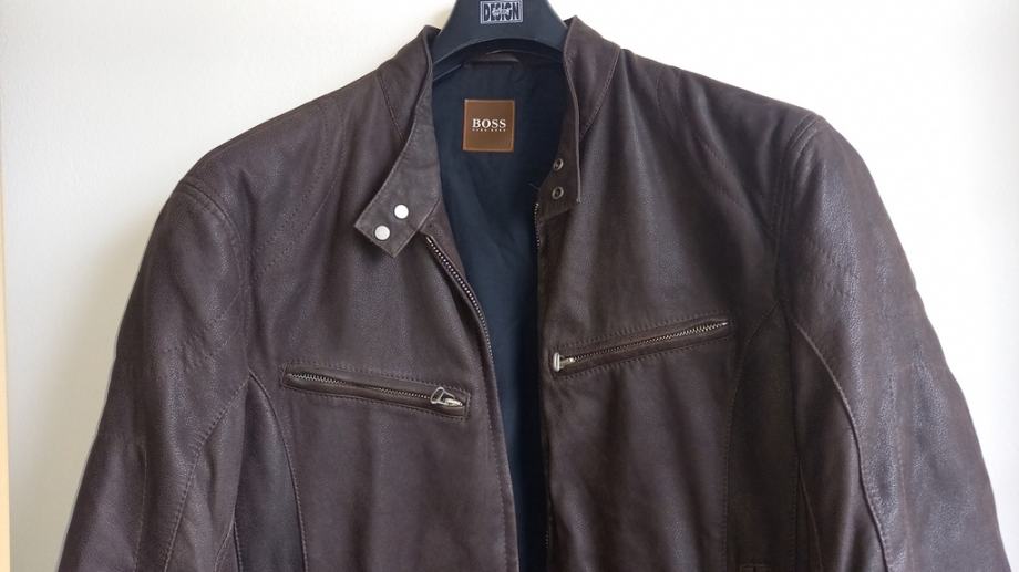 Hugo Boss muška kožna jakna tamnosmeđe boje.