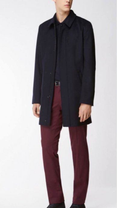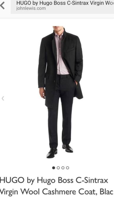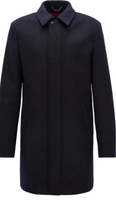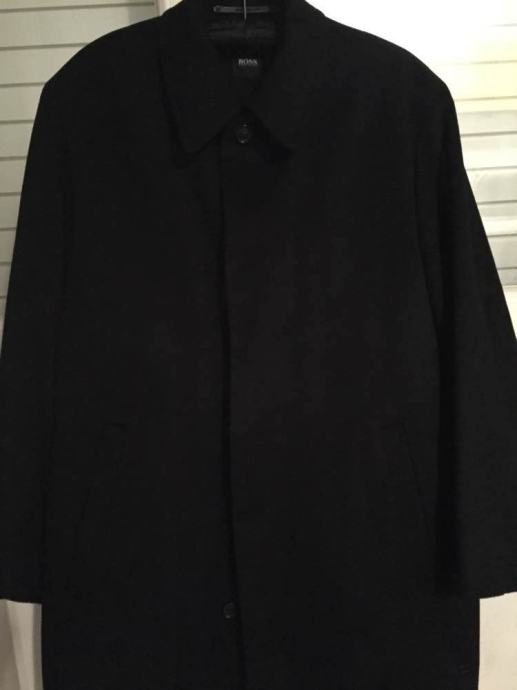 HUGO BOSS Original ....efektan crni kaput ...kvalitetan mix Virgin Wool 85% i Cashmere 15%...vrlo ugodna ,mekana i topla vuna sa saten podstavom...nenošen...elegantan ravan kroj kaputa,jakne...duljina kaputa do malo poviše koljena cca..skriveno kopčanje...slike s neta kao prikaz modela.....odgovara vel.54-56 ...dekl.56....