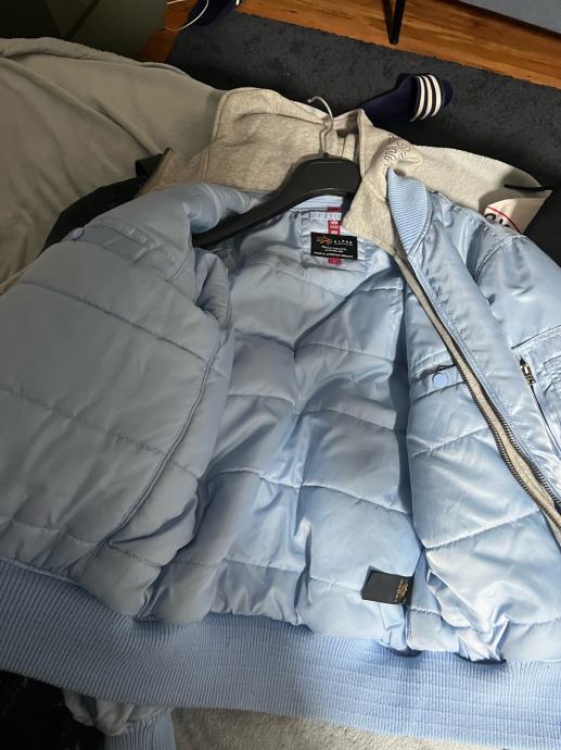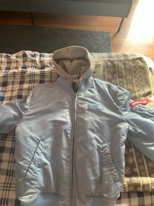 Alpha industries jakna plave boje. Nova kupljena u Peek & Cloppenburg. Kapuljaca se može maknut. Veličina je L ali paše i na M.