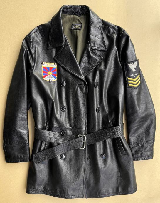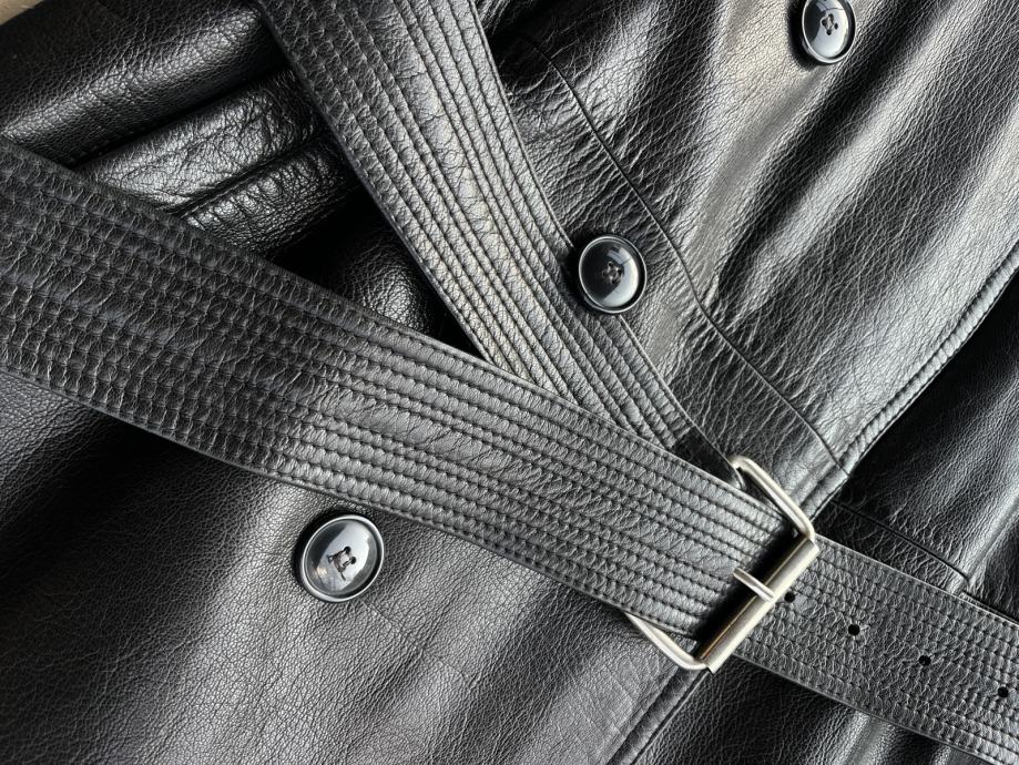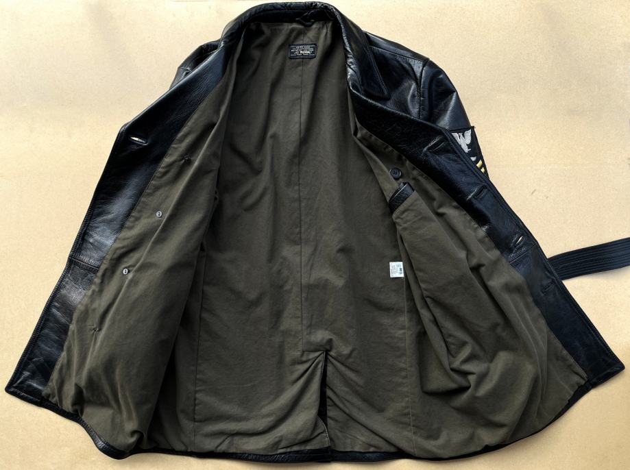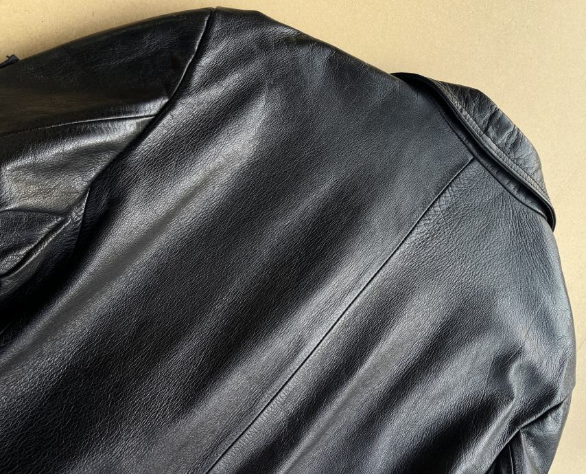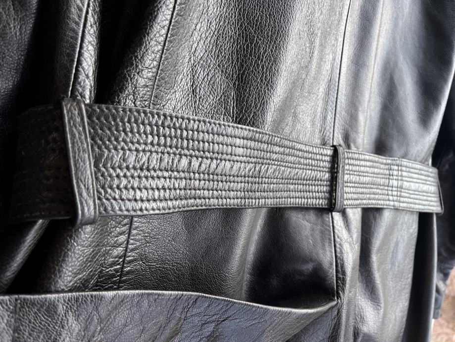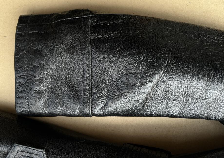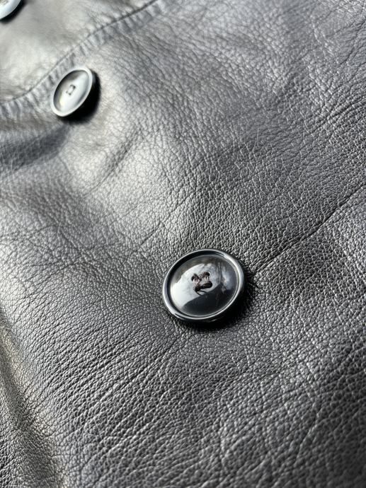 ⚜ LEE TREVOR kožna jakna (kožni kaput u Pea coat stilu). Vojnički stil. Izrađen od vrlo debele no mekane kože. Dva prednja grijača za ruke i jedan podstavljeni džep. Dvostruki red gumba. Kožni remen. Podstavljen teškim pamučnim materijalom. ⚜