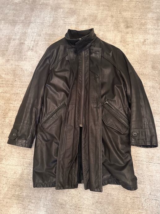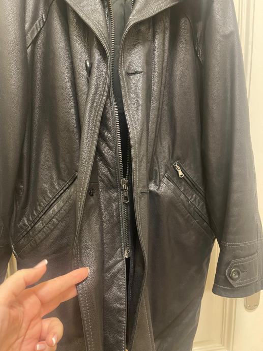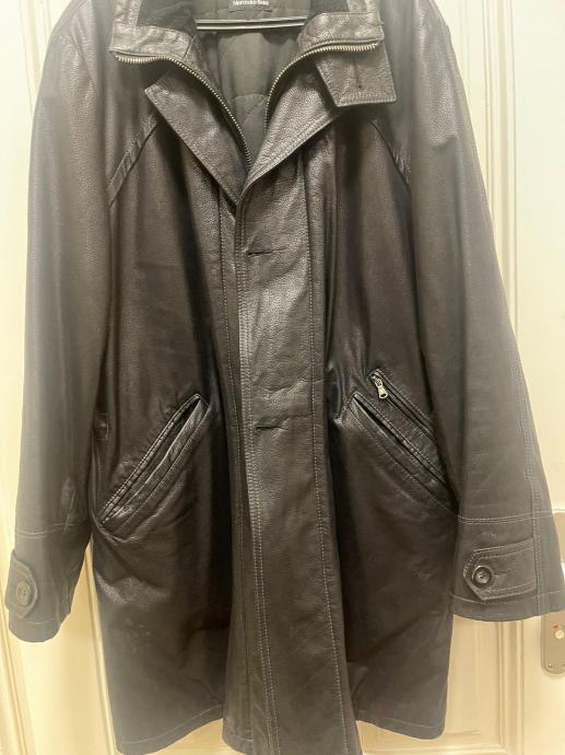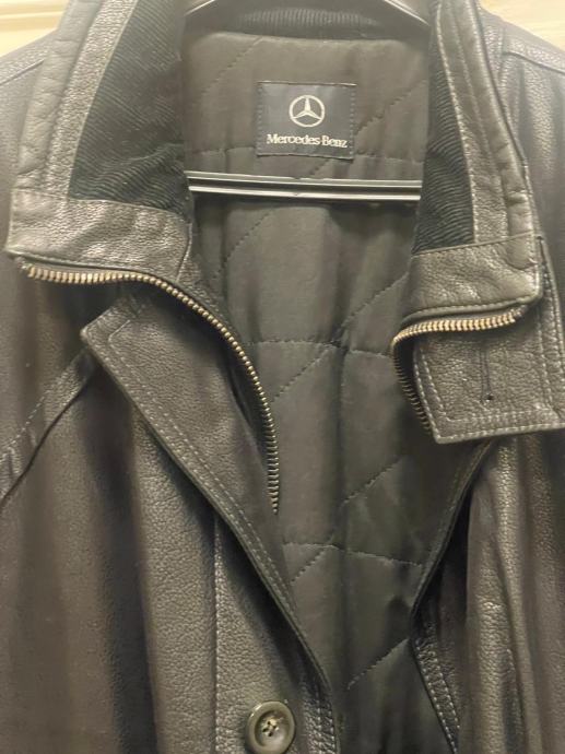 Mercedes Benz Muška kožna jakna, topla, podstavljena , s dvostrukim zatvaranjem, cif + gumbi, s dva unutarnja džepa i tri vanjska, vel 50, dužina od ramena do doljnjeg ruba 94 cm, širina u ramenima 50 cm, dužina rukava 60 cm.