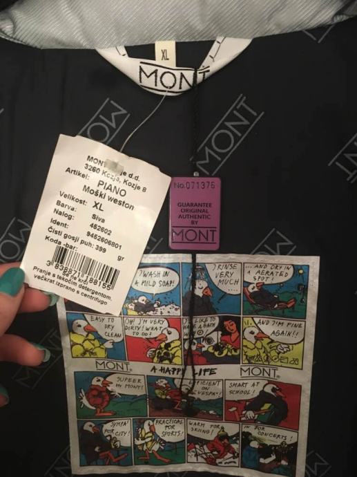 MONT muška zimska jakna. Original, sivo-srebrna, veličina XL. Jakna je potpuno nova, nikad nošena, još uvijek ima sve etikete na sebi. Ima kapuljaču koja se izvlači iz ovratnika.