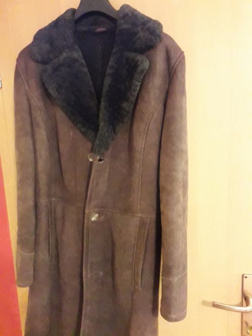 muška bunda od brušene kože podstavljena krznom. jako malo nošena. boja: tamno smeđa.