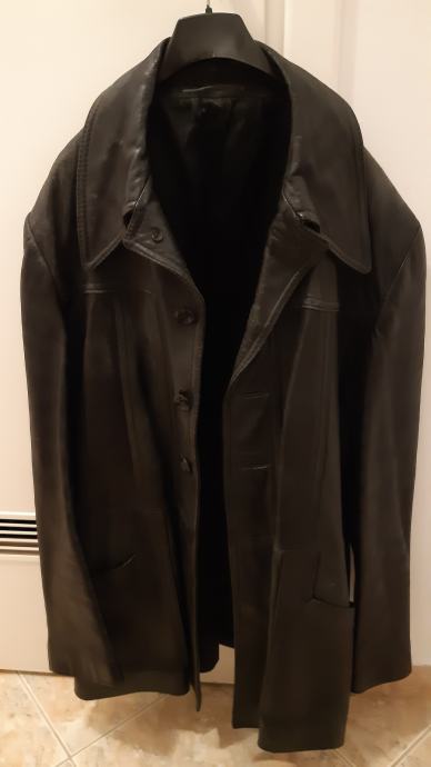 Muška crna vintage kožna jakna-kaput, veličina 52-54, odlična,BJ