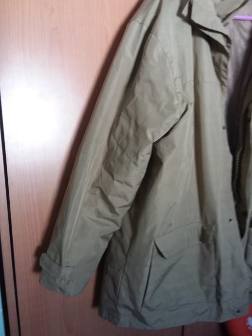 - širina cca 65 cm , dužina cca 85 , bež boje / boja krem ( pijeska ) , ima skidivu podstavu , skrivenu kapuljaču u ovratniku , sve je na patent a kopčanje patent + drukeri , kratko nošena svega 2-3 puta doslovno kao nova , vrlo topla i vodootporna , kad se skine podstava može se nositi i u proljeće / jesen ,