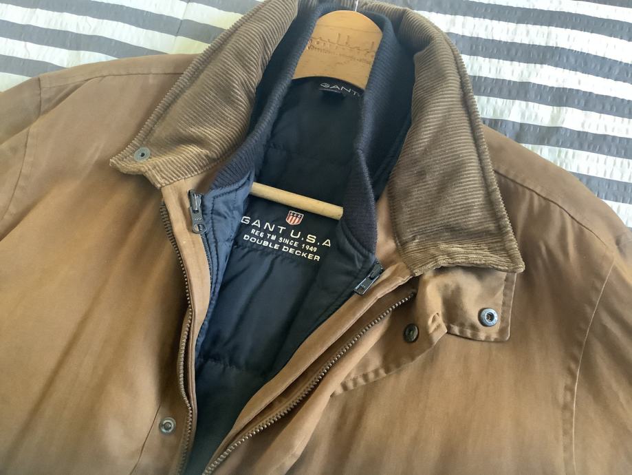 Mušku jaknu GANT original /kupljena u Gantu u Zagrebu/ nošenu ali vrlo malo. Boja duhana.