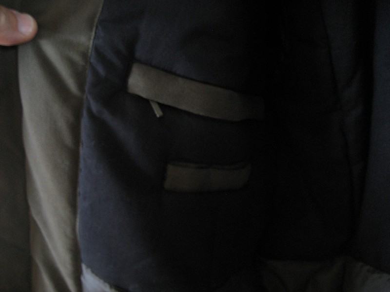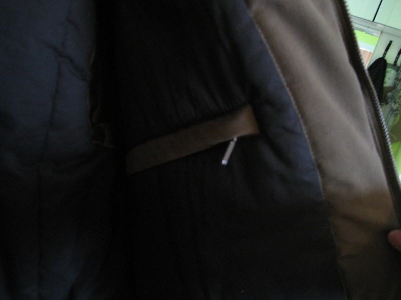 Ima 2 vanjska i 3 unutarnja đepa i kapuljaču smještenu u kragni.