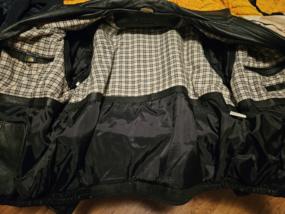 Vintage muška kožna jakna s puno vanjskih i unutarnjih džepova. Rukavi se mogu skinuti pa postaje prsluk.