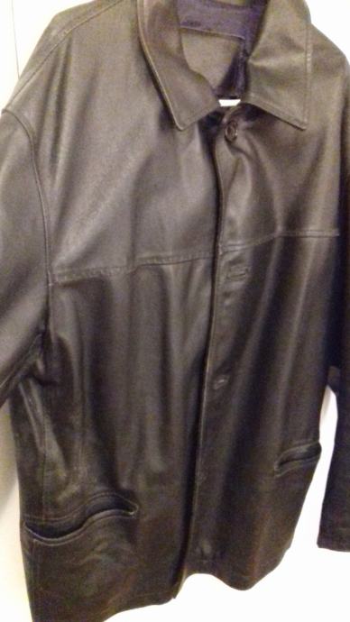 Elegantnu kožnu jaknu kaput na gumbe kao novu prodajem veličina xl do xxl. Ima bočno đepove i unutra za novcanik