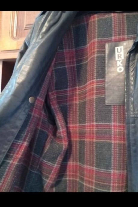 Prodajem rabljenu mušku kožnu jaknu URKO 14 A u smeđoj boji, veličine XXS. Jakna je izrađena od kvalitetne goveđe kože i dolazi s praktičnim džepovima. Ima zimski umetak, koji se može izvaditi. Mjere vanjska dužina rukava 58 cm, vanjska mjera leđa 52 cm.