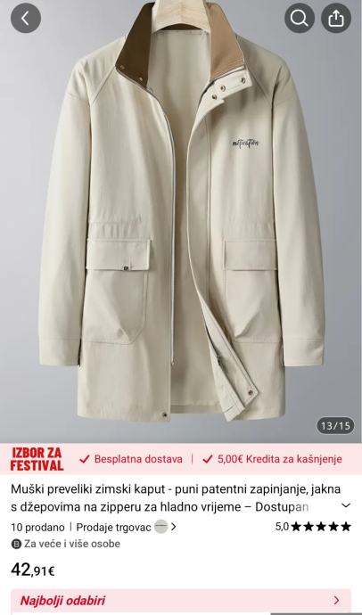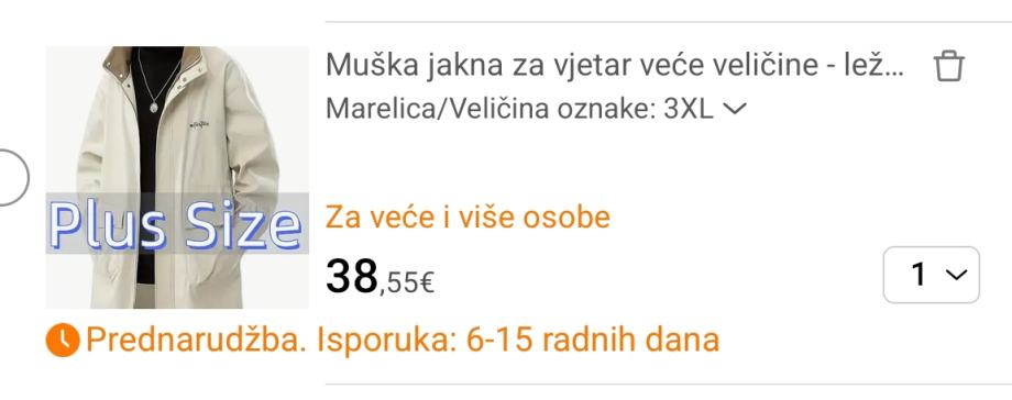 Sasvim nova jakna - vjetrovka, srednje dugački kroj, veličina 3XL ili EU 60, otprilike za visinu oko 183-189cm +/- , ovisi o građi tijela i preferencijama dužine...