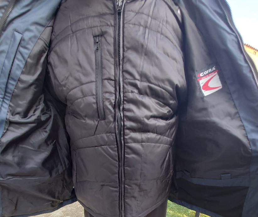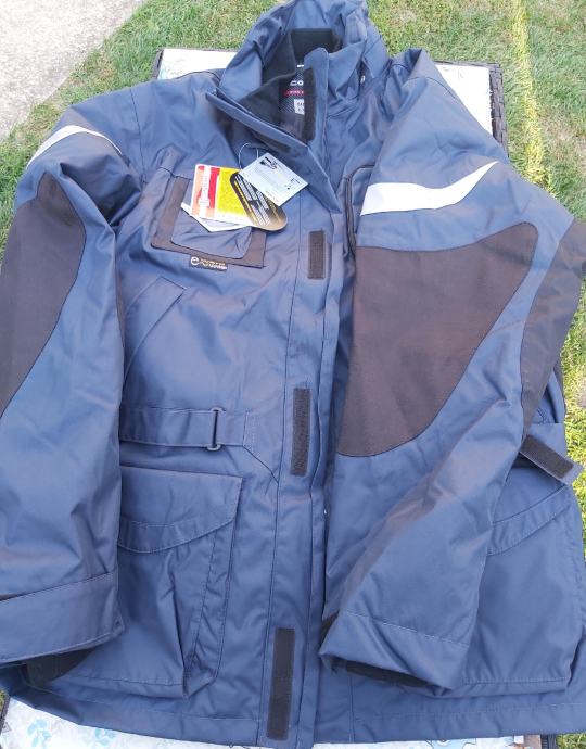 Nova zaštitna radna jakna,sa odvojivim prslukom i kapuljačom,tamnoplave boje,komotnog kroja,veličina XXL.